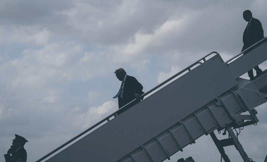 President Donald Trump arrives at Palm Beach International Airport in West Palm Beach, Fla., March 28, 2025. Trump did not rule out seeking a third term in office on Sunday, telling NBC News that he was “not joking” about the possibility and suggesting there were “methods” to circumvent the two-term limit laid out in the Constitution. (Haiyun Jiang/The New York Times)