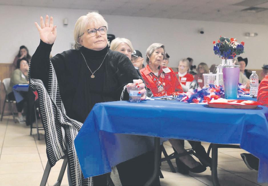 An audience member asks a question of Rep. Pete Sessions (R-Texas) during a town hall at a community center in Trinity, Texas, on Saturday, Feb. 22, 2025. After a monthlong honeymoon for the GOP at the start of President Donald Trump’s term, lawmakers are confronting a groundswell of fear and disaffection in districts around the country. (Mark Felix/The New York Times)