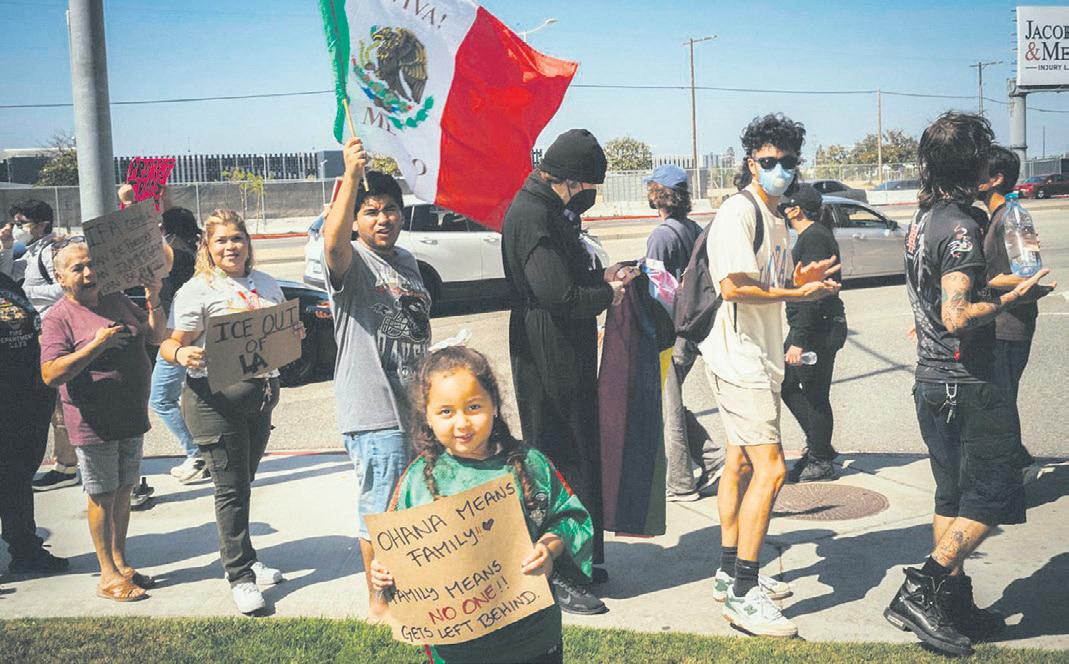 Protesters outside the Westin LAX in Los Angeles on June 12, 2025. Fears have arisen in majority-Hispanic areas in and around Los Angeles that the agents involved in the Trump administration’s immigration raids are questioning the legal status of Americans who happen to be Latino. (Sinna Nasseri/The New York Times)