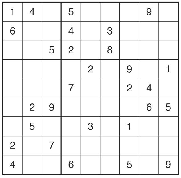 Every 3x3 square must contain the numbers from 1 through 9