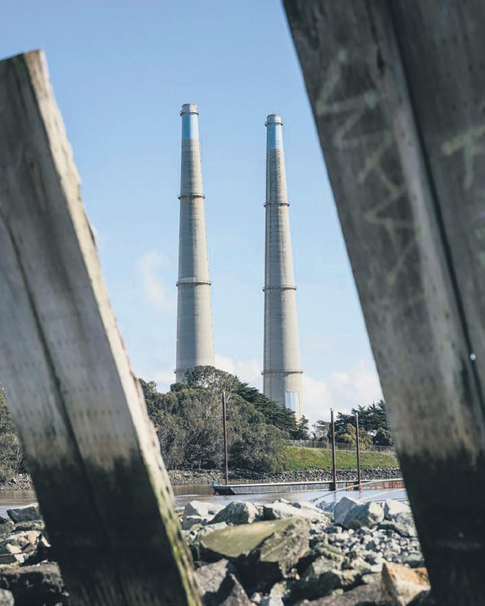 Stacks at the Moss Landing Power Plant, where a battery energy storage facility burned in January, on Monterey Bay in Moss Landing, Calif., Feb. 7, 2025. Since the fire, residents have gotten sick and anxious, and heavy metals detected in the soil have also created health implications for Monterey County’s agriculture industry and the workers who pick the produce. (Ian Bates/The New York Times)