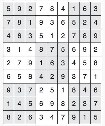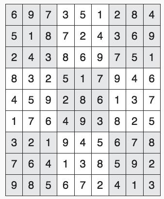 Every 3x3 square must contain the numbers from 1 through 9