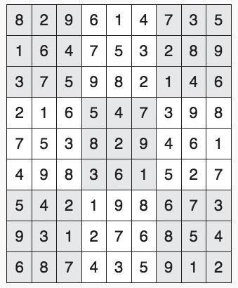 Every 3x3 square must contain the numbers from 1 through 9