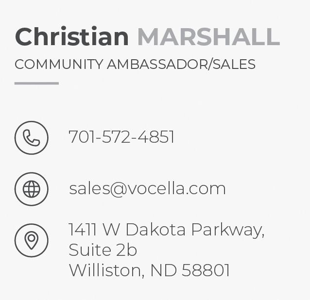 Monday - Thursday | 9:00 am to 5:00 pm & Friday | 9:00am - Noon News & Press Releases news@vocella.com Advertising sales@vocella.com Billing billing@vocella.com General Inquiries info@vocella.com Contact Us PO Box 389 1411 West Dakota Parkway, 2A Williston, ND 58801 701.572.4851 PROFILES 03 — Williams Co NDSU Extension NEWS BRIEFS 04 — WSC fall registration — Tree planting assistance OIL & AG 05 — Controversial pipeline plan LIFESTYLE 06 — Food preservation CULTURE — The Bookshelf book review 07 HEALTH & WELLNESS 08 — Wellness Wednesday: National Living Well Month COMMUNITY SHOPPER Directory 10 Classifieds 11 Job Listings 13 Puzzles 14 Announcements & Events 15 Realty 16
