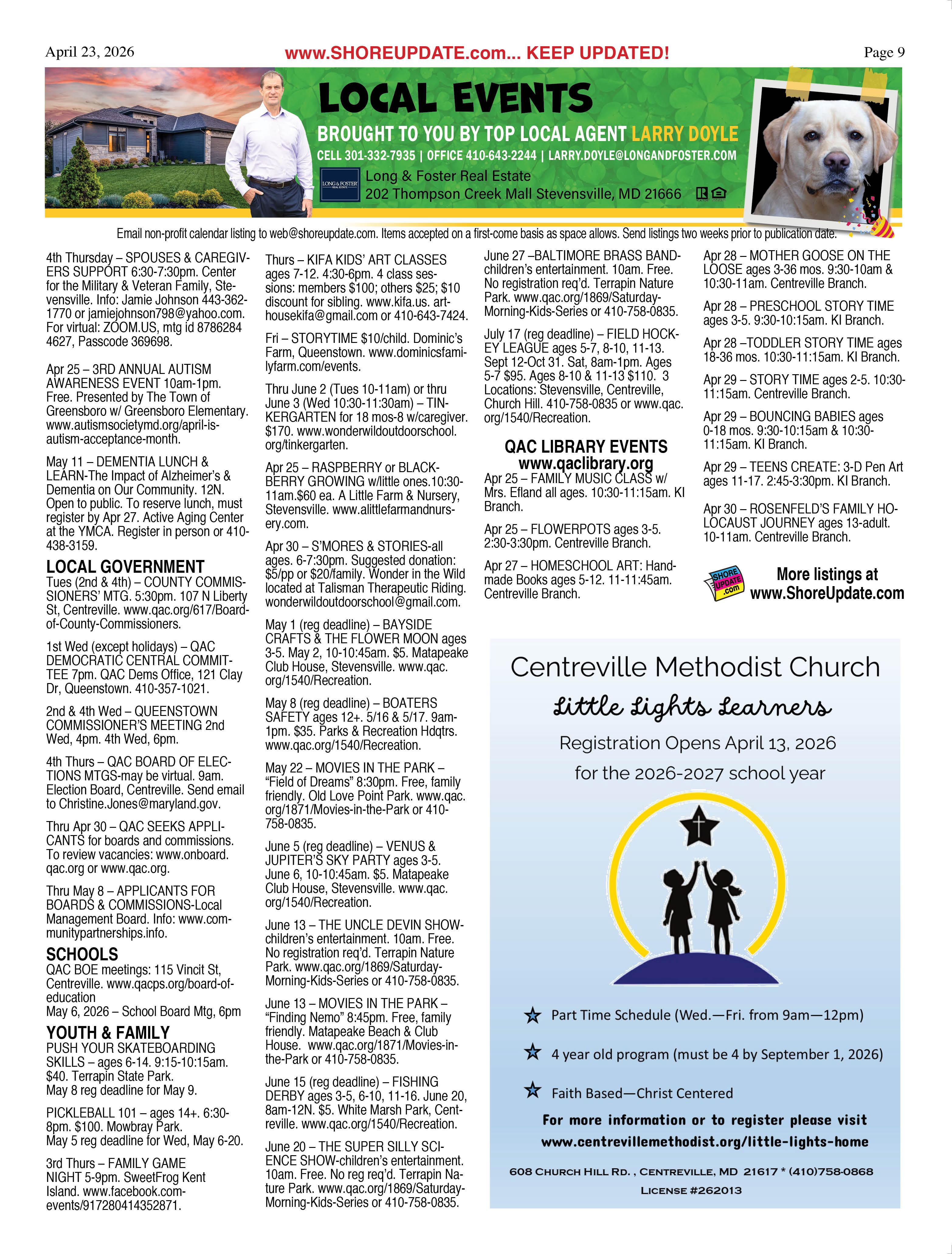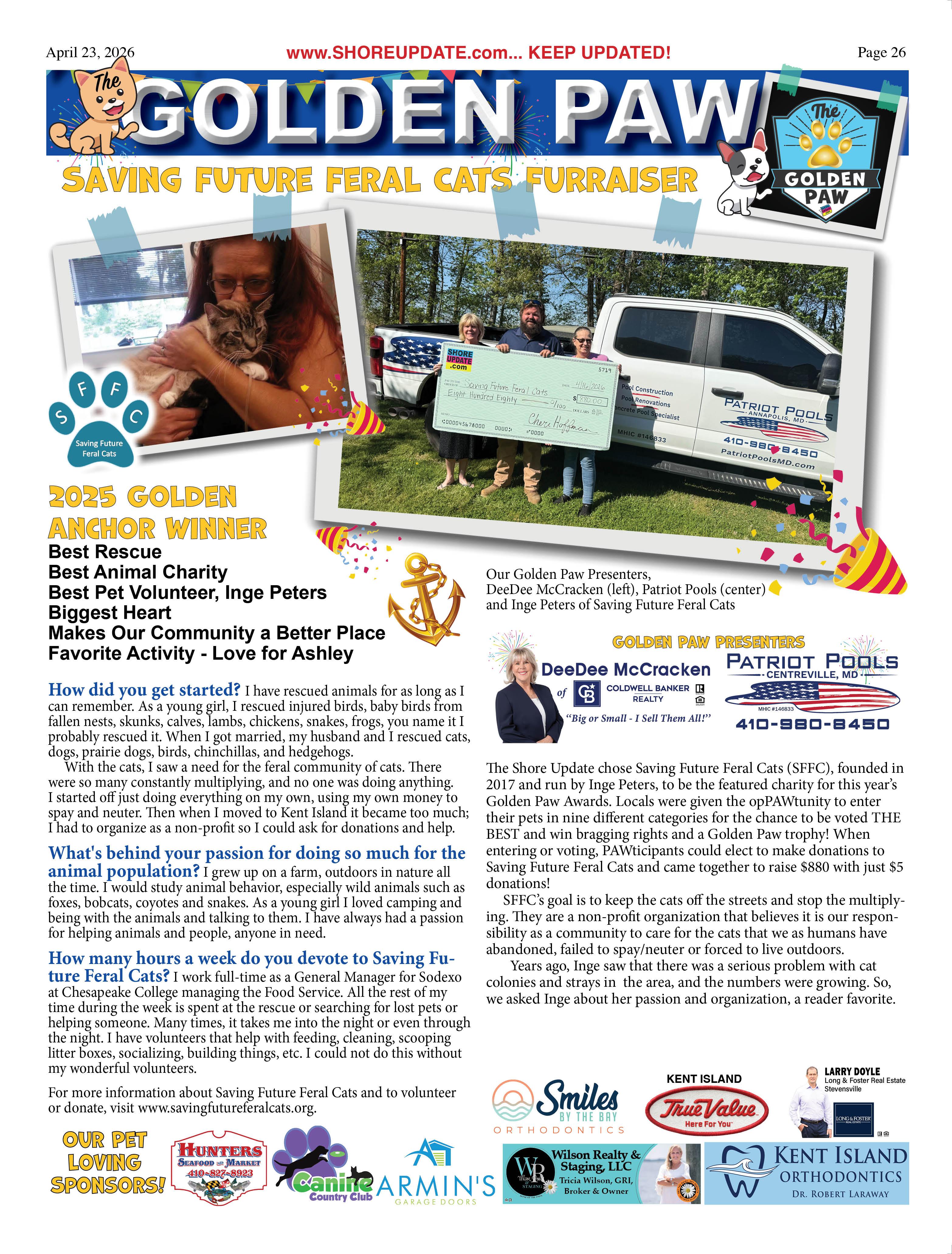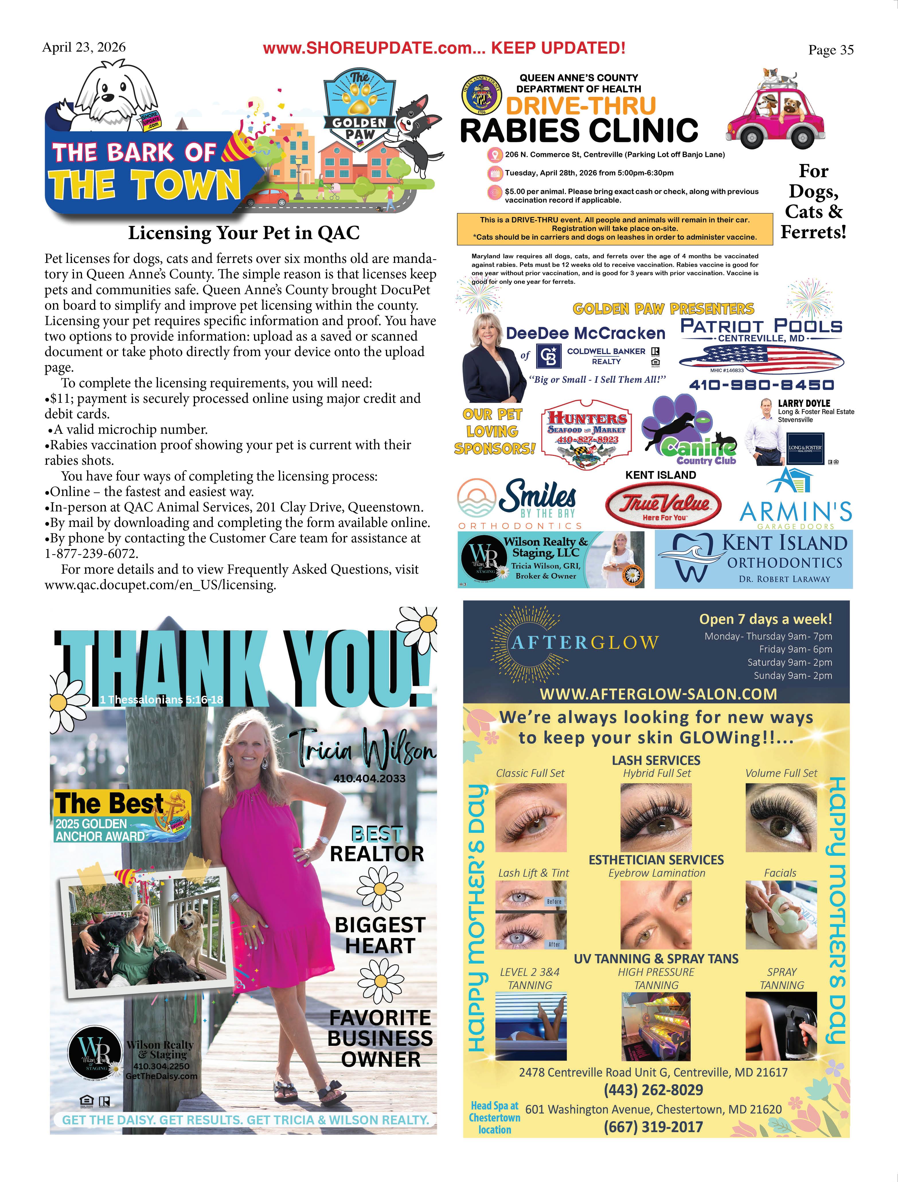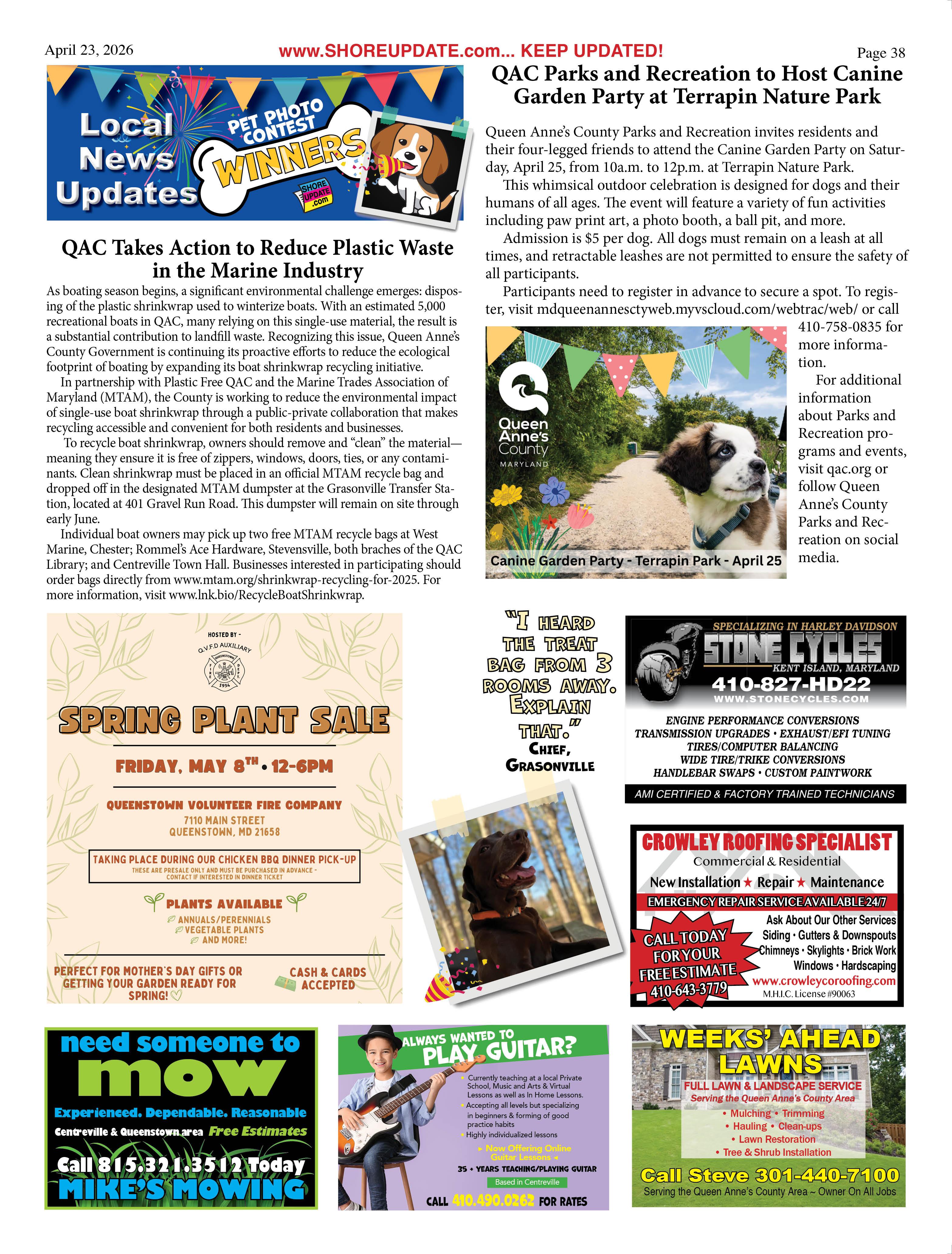 •Queen Anne’s County Animal Services, 201 Clay Drive, Queenstown. 410827-7178, www.qac.org/1425/Animal-Services.