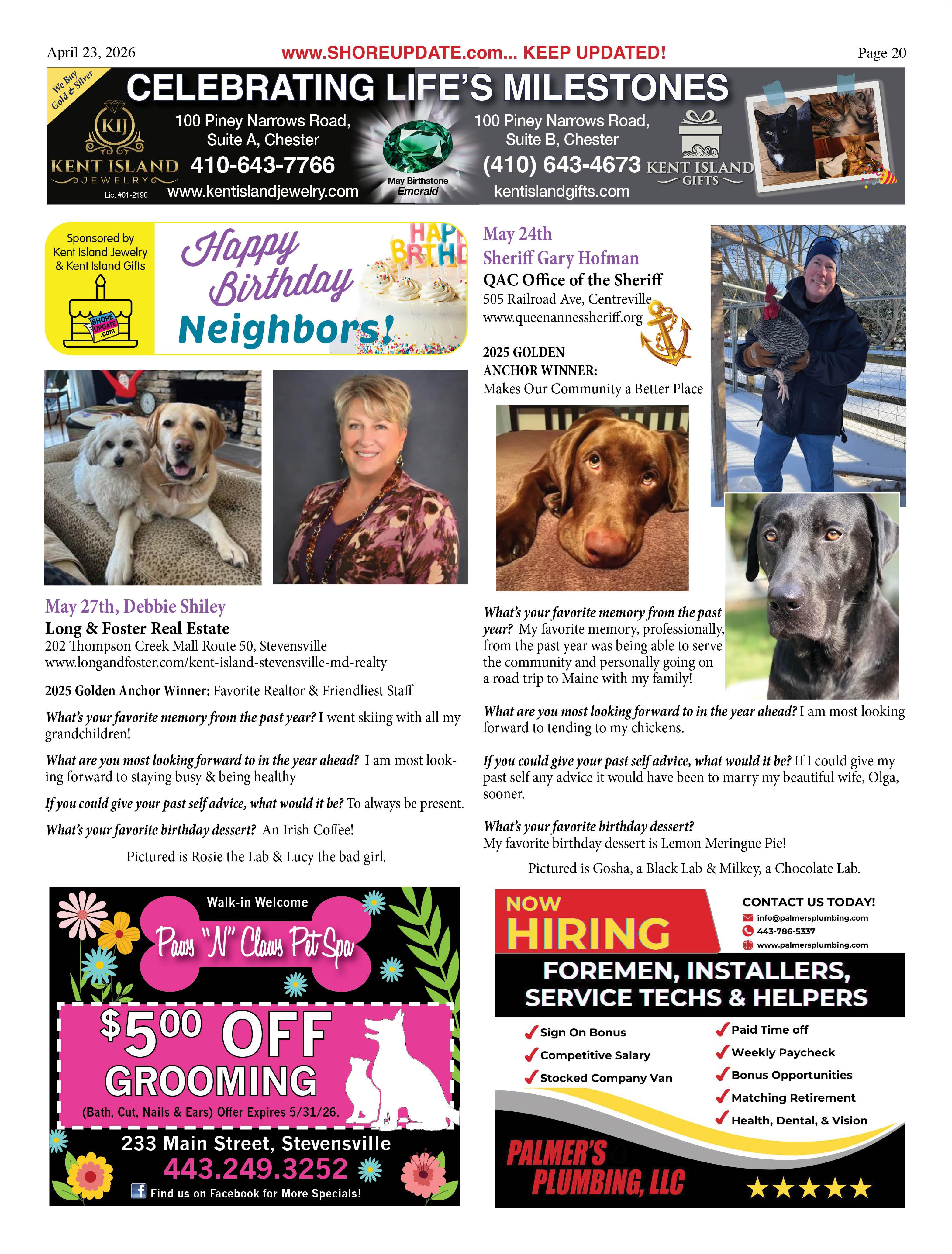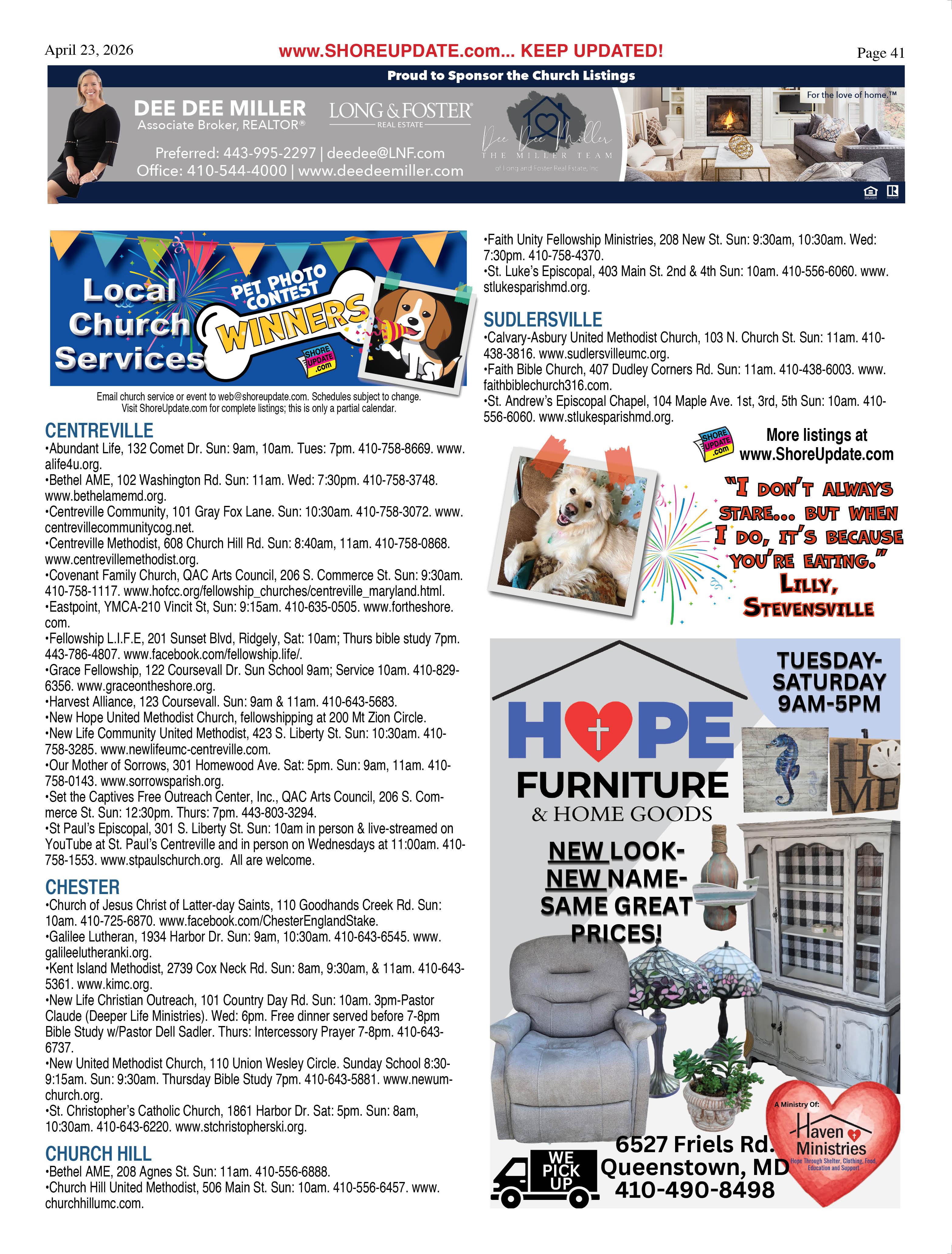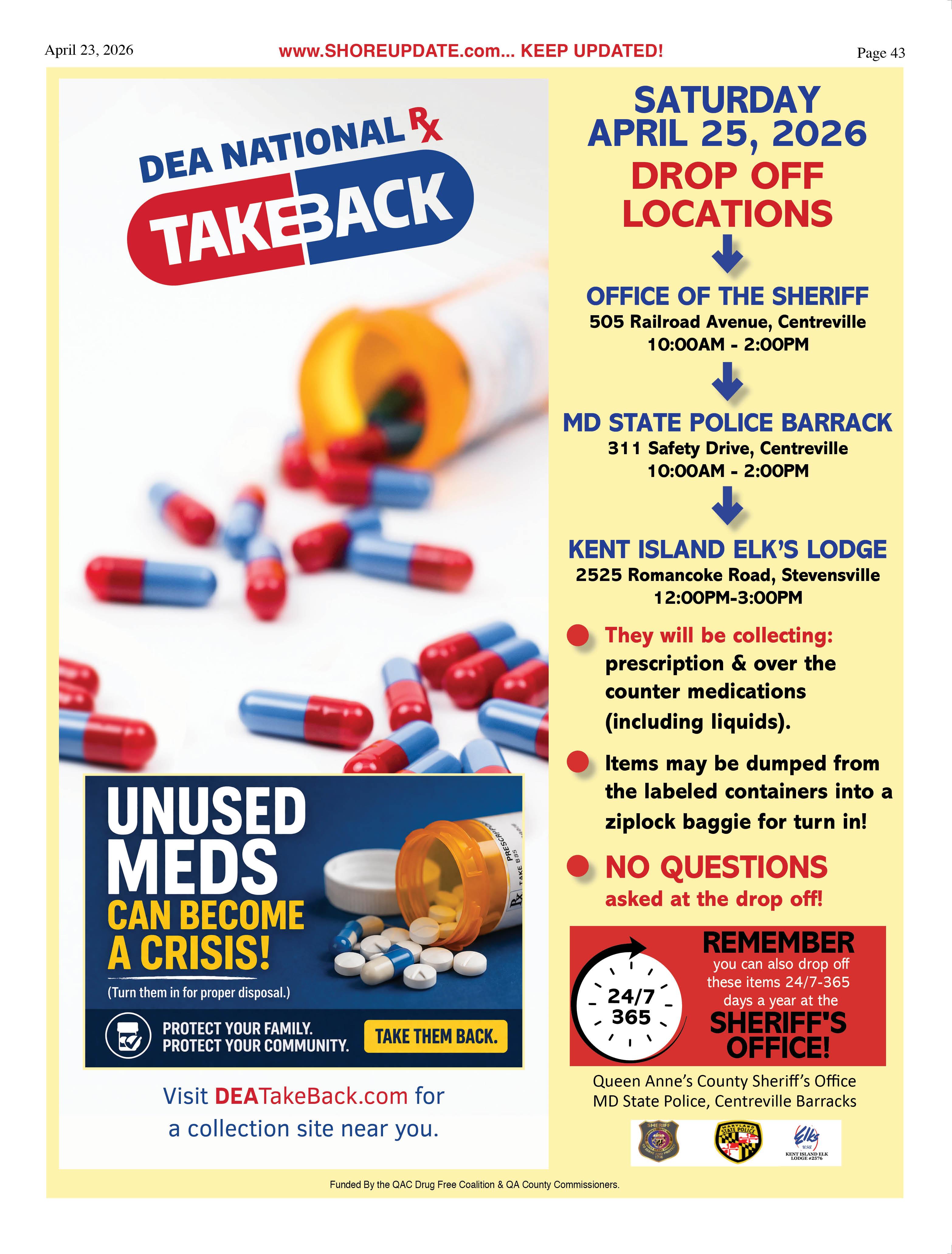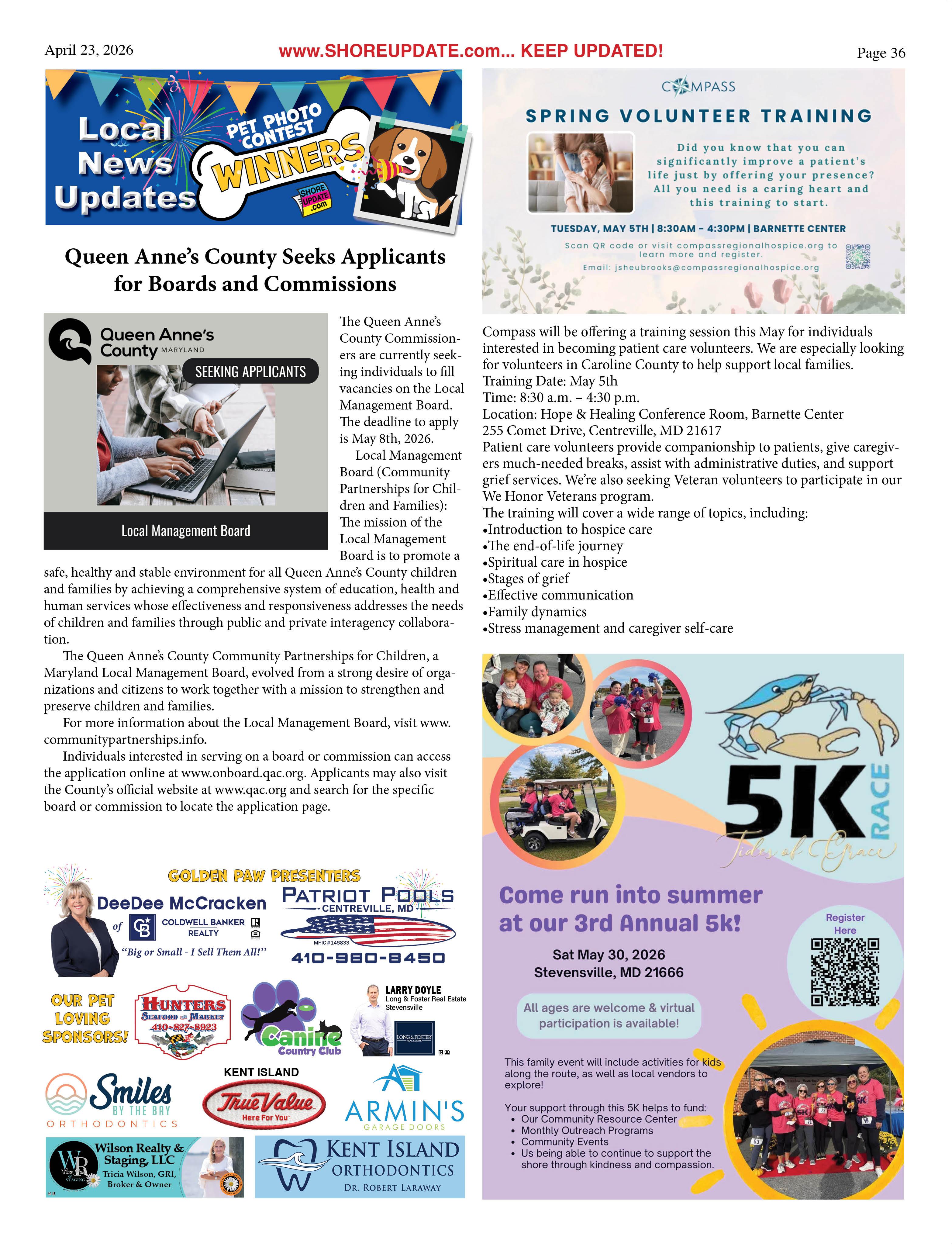 •Queen Anne’s County Animal Services, 201 Clay Drive, Queenstown. 410827-7178, www.qac.org/1425/Animal-Services.