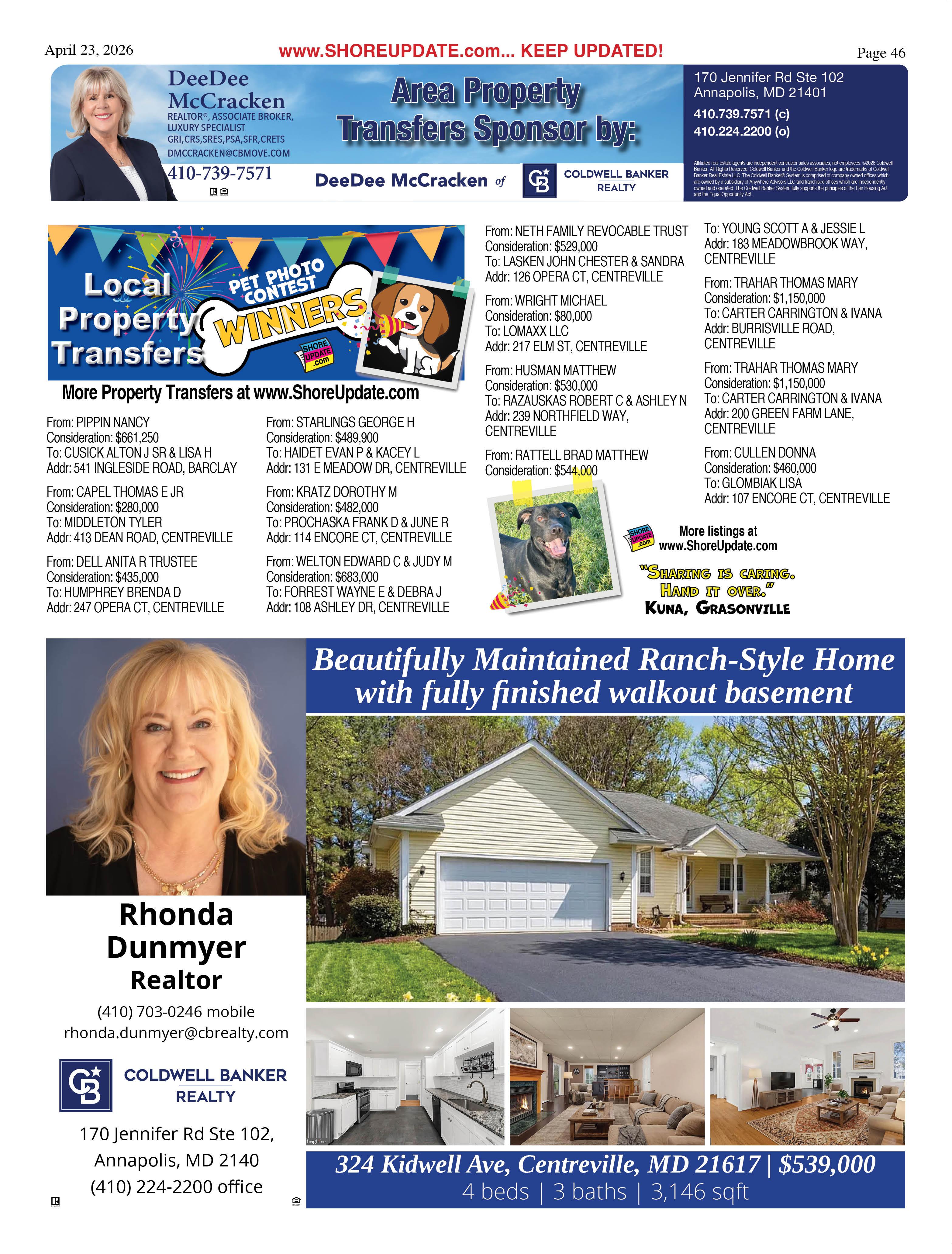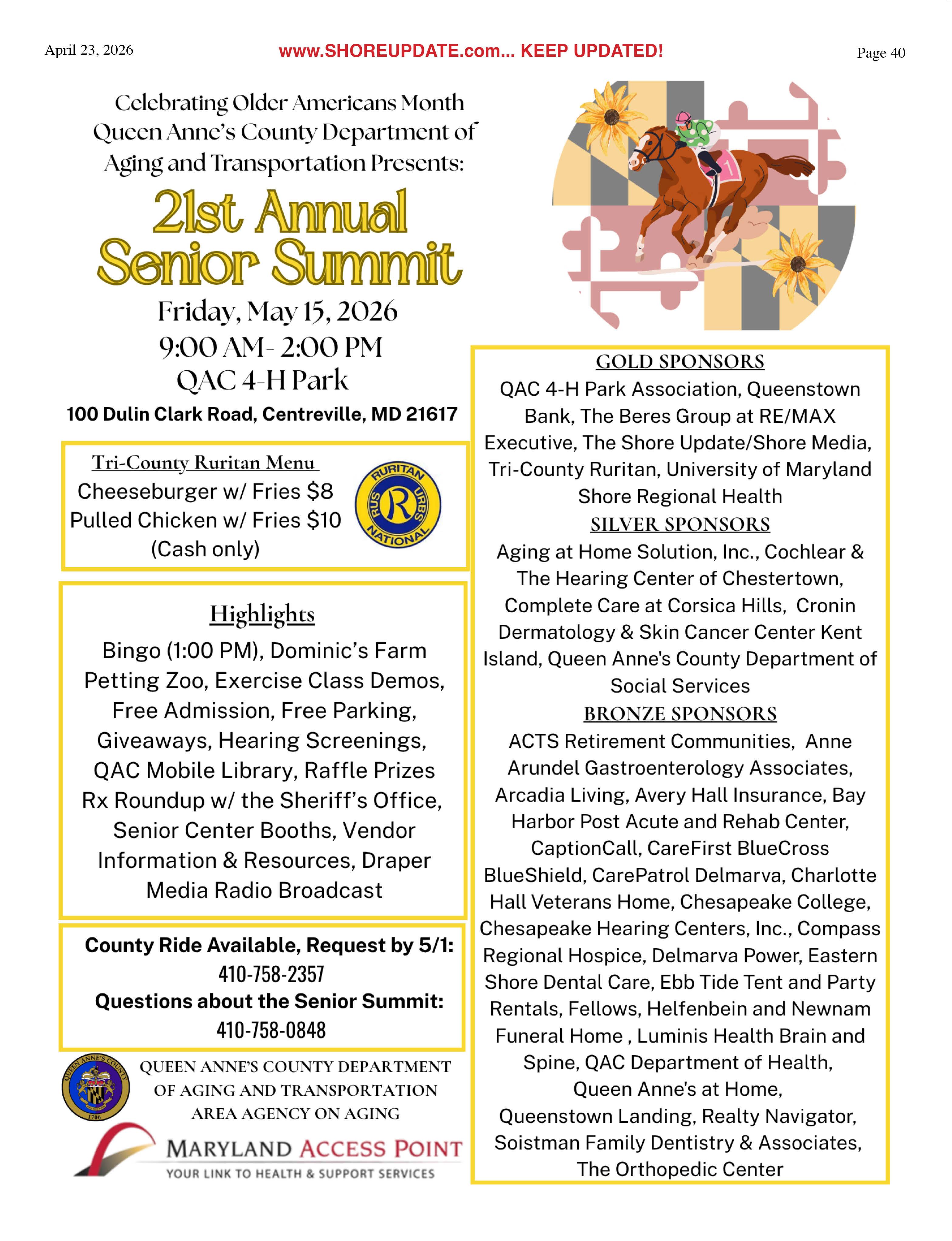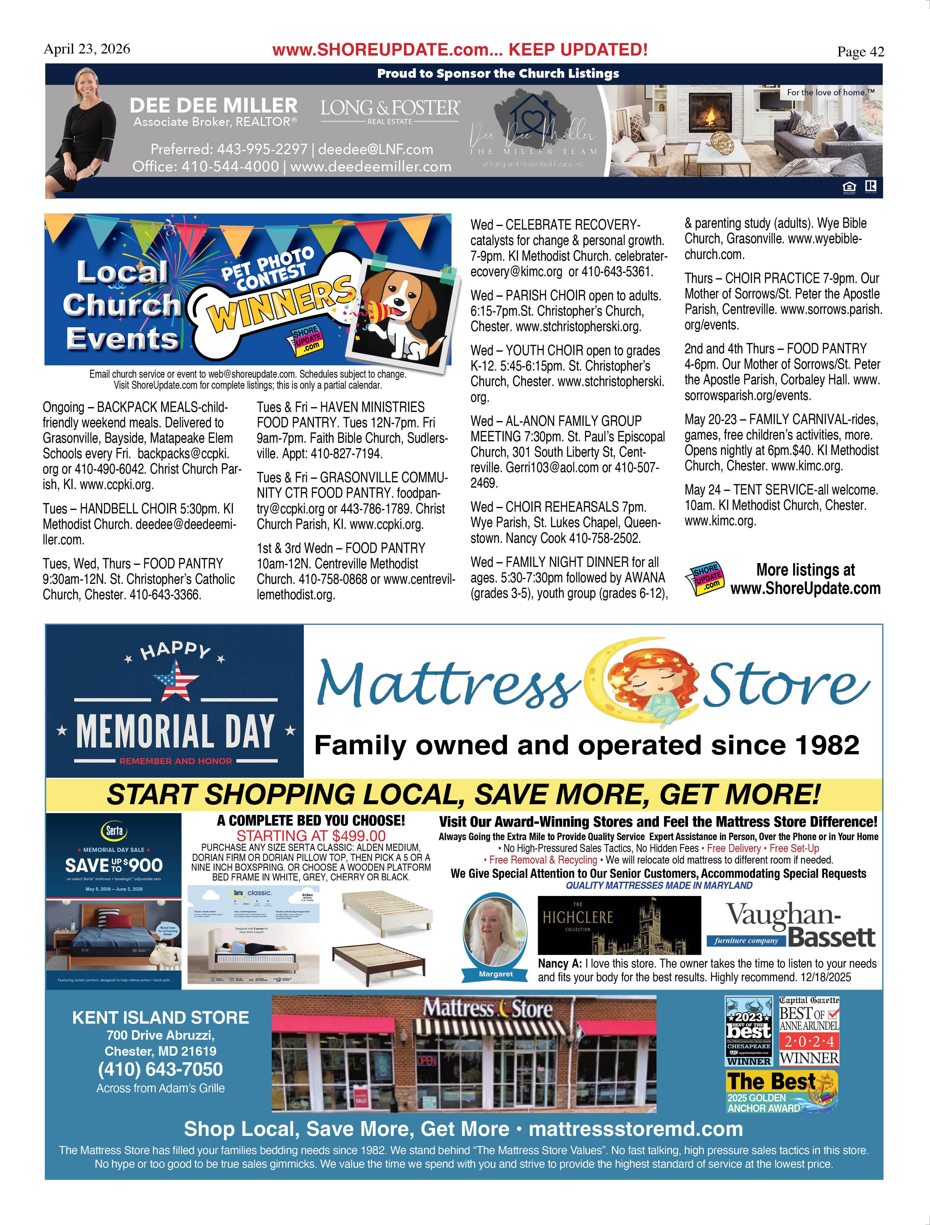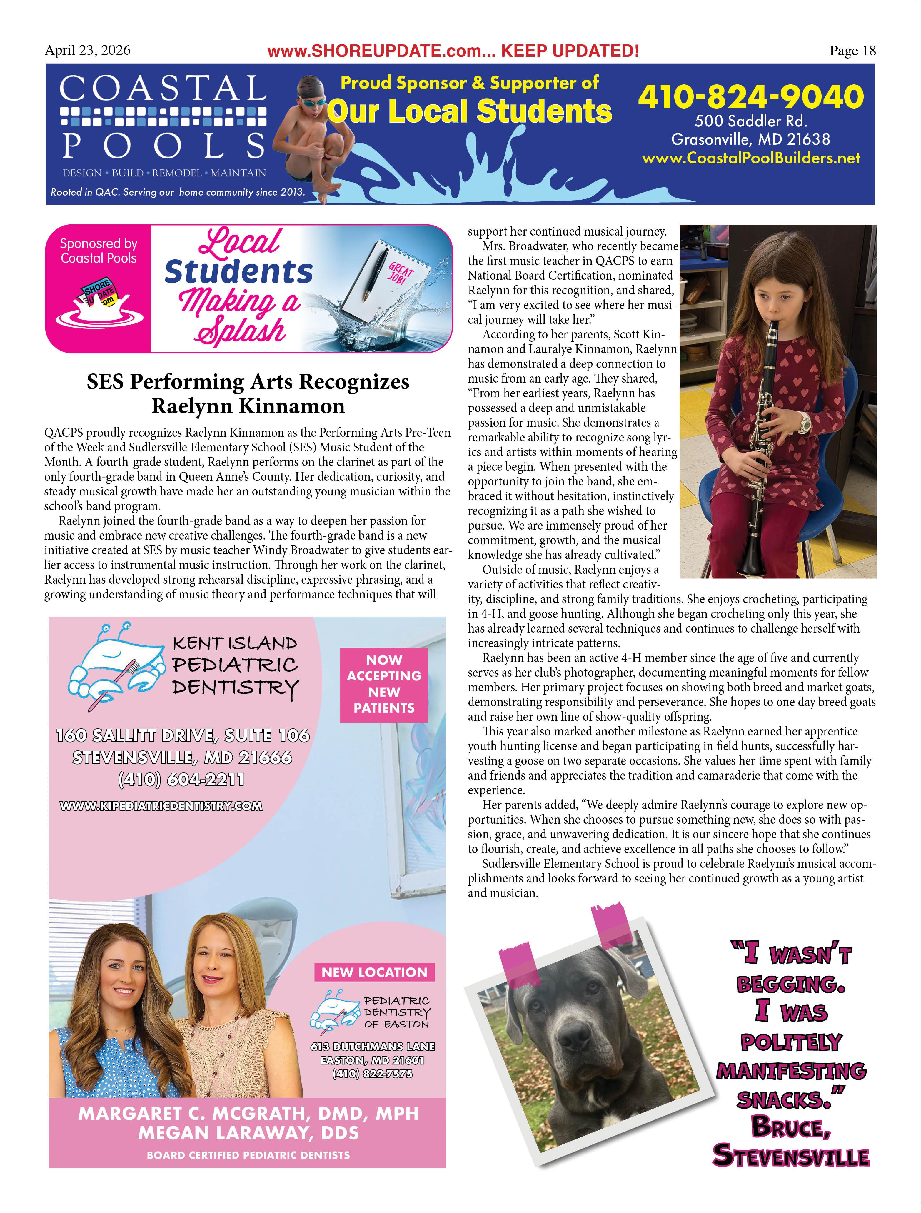 •Queen Anne’s County Animal Services, 201 Clay Drive, Queenstown. 410827-7178, www.qac.org/1425/Animal-Services.