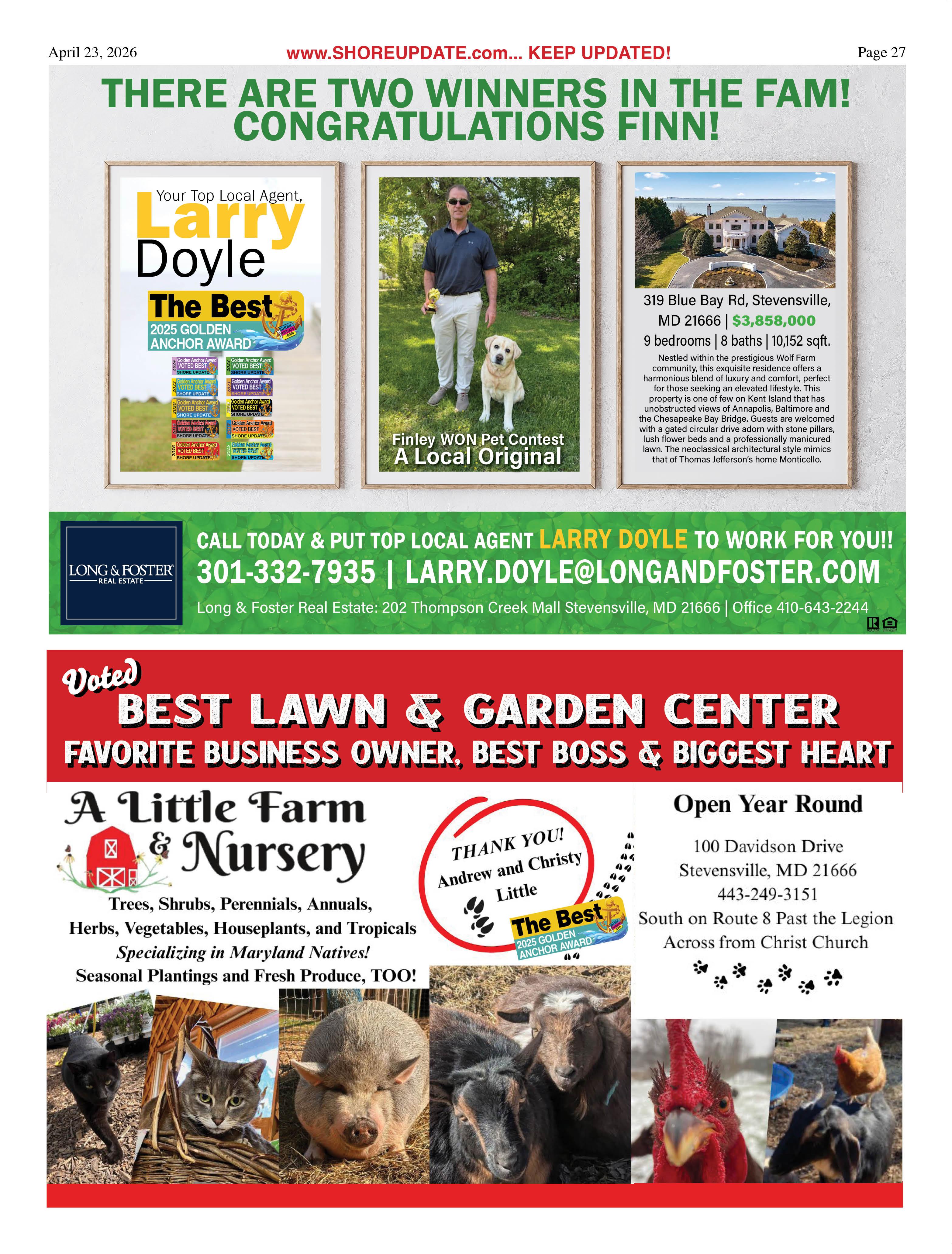 •Animal Welfare League of Queen Anne’s County (AWL), Queenstown. 410758-0153, info@awlqac.org, www.awlqac.org. A 501(c)(3) non-profit dedicated to saving and improving the lives of homeless animals.