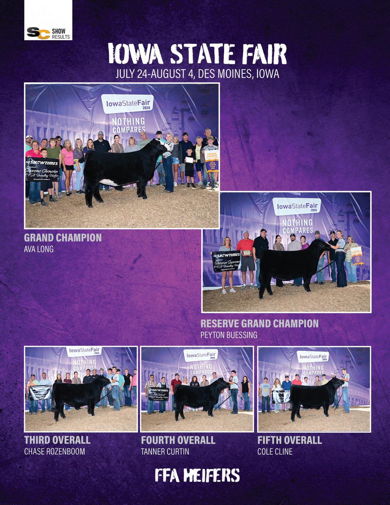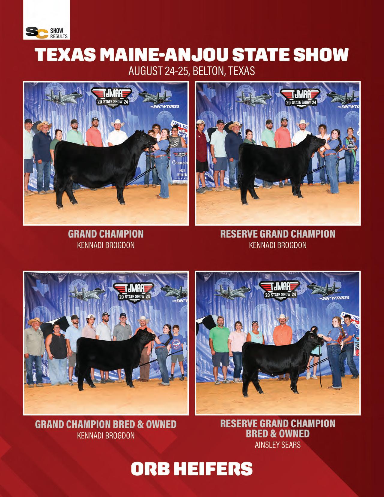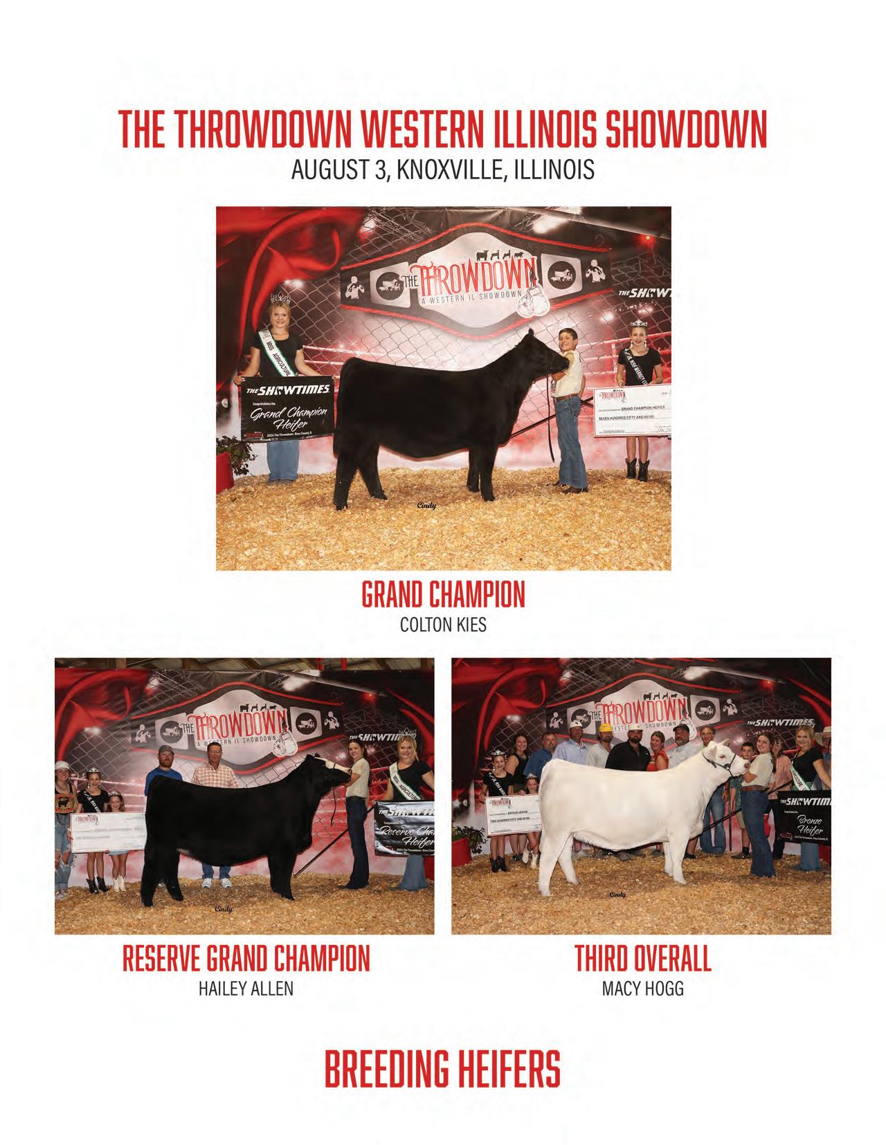 -2024 Maine Anjou Junior Nationals Grand and Reserve Maine Anjou. -2024 Maine Anjou Junior Nationals Maine Angus Champion. . 2024 Reserve Supreme Champion Cattleman’s Congress. -2024 Kansas Beef Expo Reserve Overall Supreme Champion Junior Heifer. -2024 Supreme Champion Heifer Ring A&B Meltdown. -2024 Illinois State Fair Supreme Champion Breeding Heifer.