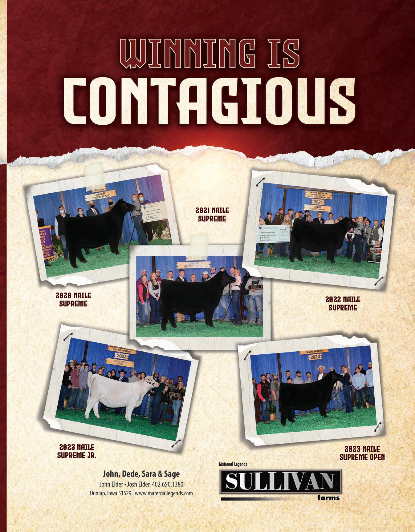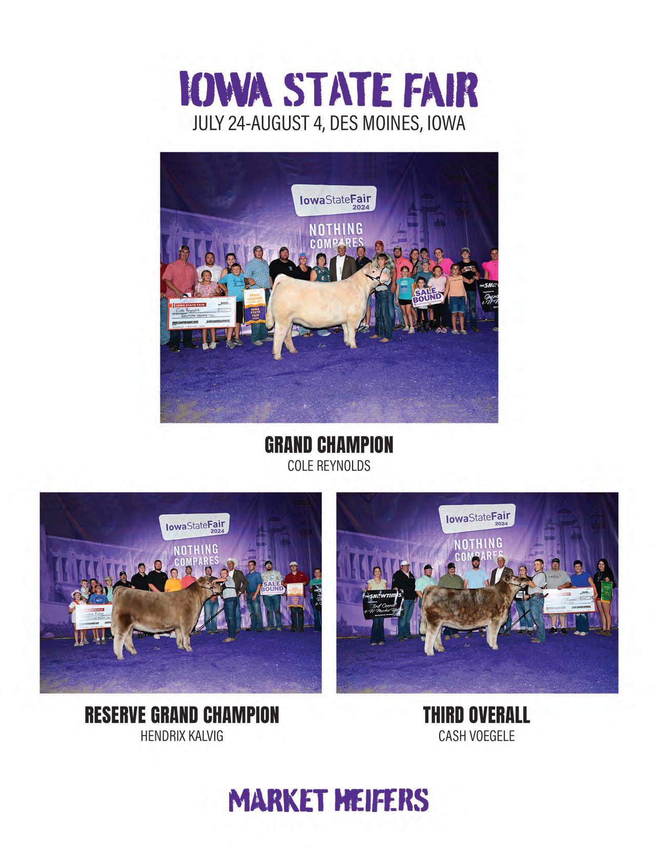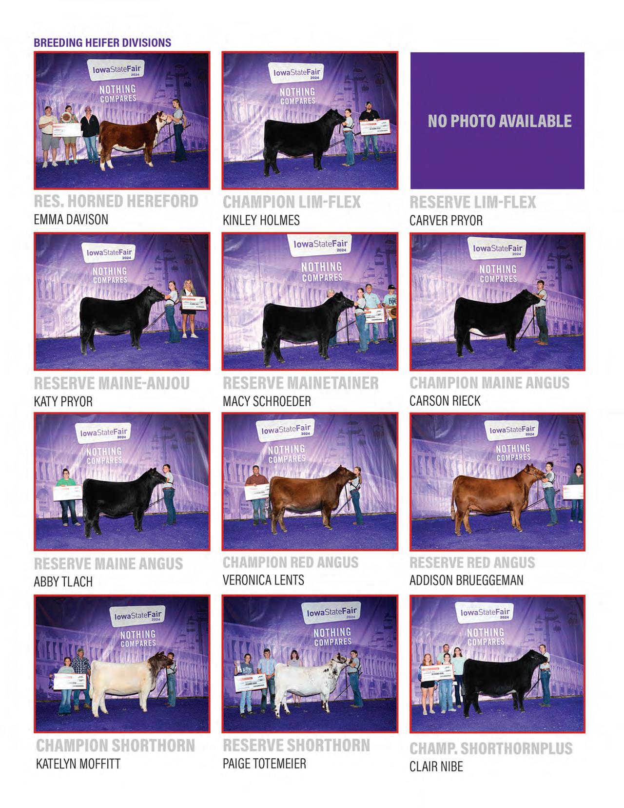 -2024 Maine Anjou Junior Nationals Grand and Reserve Maine Anjou. -2024 Maine Anjou Junior Nationals Maine Angus Champion. . 2024 Reserve Supreme Champion Cattleman’s Congress. -2024 Kansas Beef Expo Reserve Overall Supreme Champion Junior Heifer. -2024 Supreme Champion Heifer Ring A&B Meltdown. -2024 Illinois State Fair Supreme Champion Breeding Heifer.