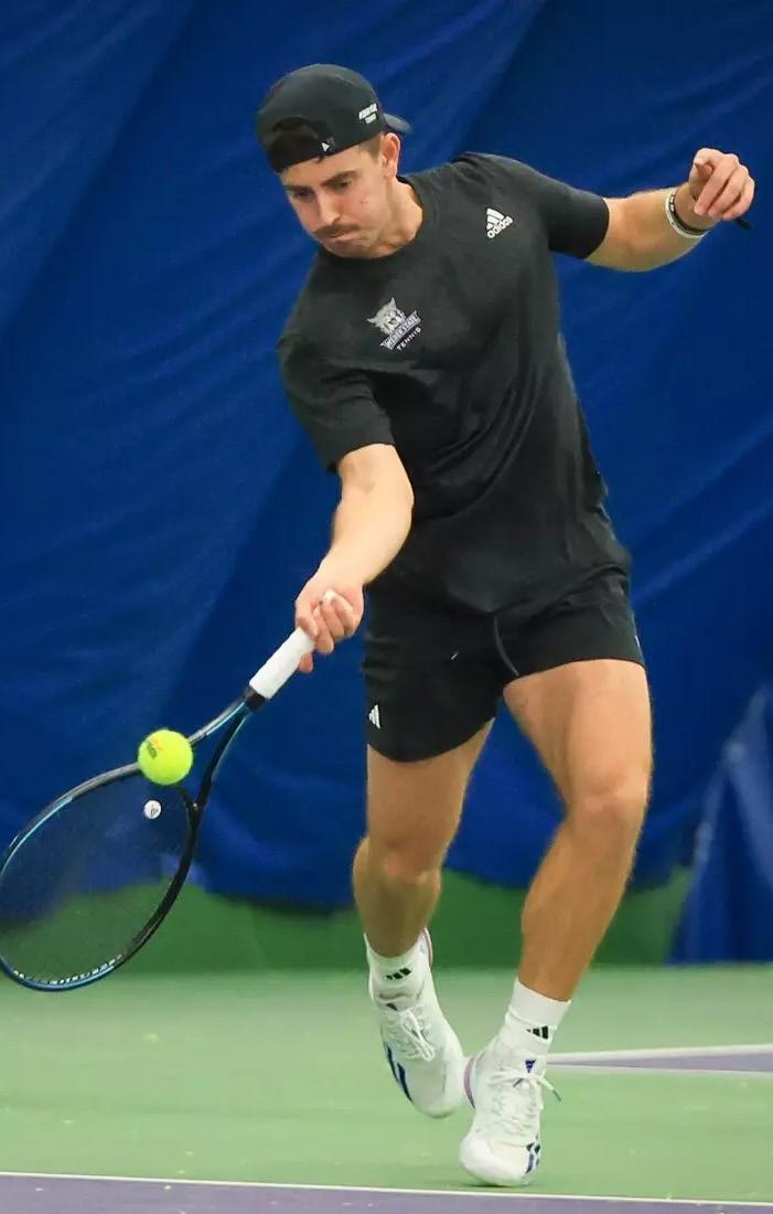 MIDDLE: Weber State University men’s tennis William Zulch going for the hit on the tennis ball during a match.