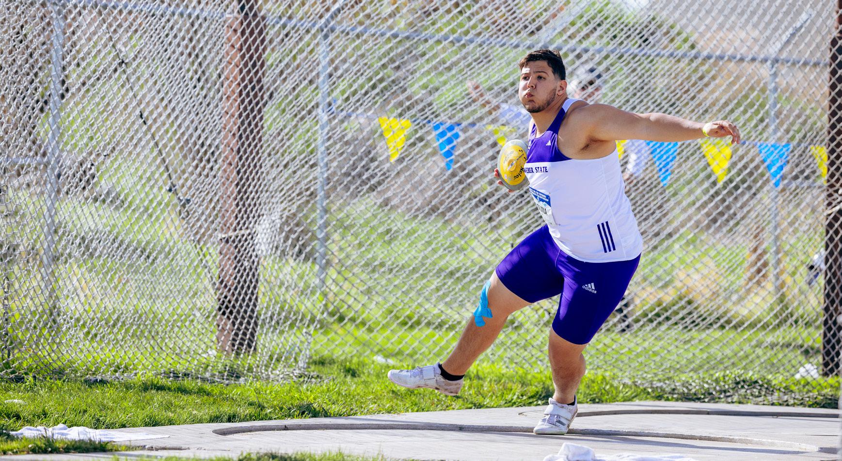 LEFT: Jeims Molina who is a thrower for Weber State University. This picture features him at the 2024 Big Sky championship throwing discus.