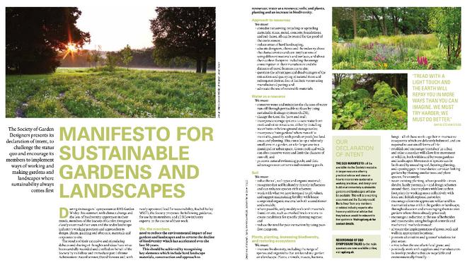 This Manifesto, published following the SGD Symposium, is a declaration of intent and is designed to establish principles and methodologies that encourage SGD Members and Affiliated Business Partners to create gardens and landscapes where sustainability comes first.