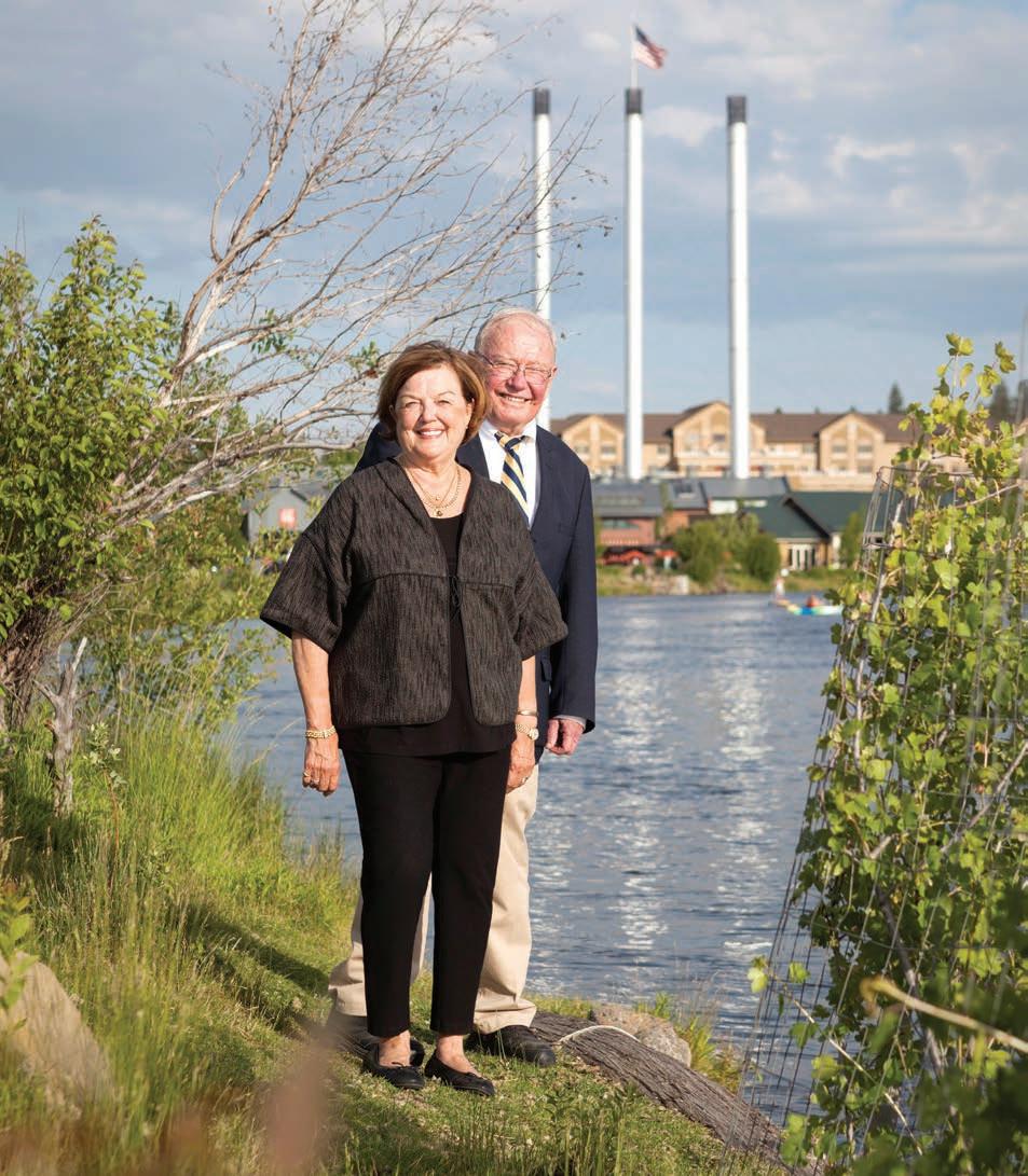 And verk he did…starting in high school with his own landscaping business and helping at an uncle’s trucking company. In 1964, he received an econom ics degree from the University of Colorado followed by four years in the Navy during the Vietnam War. He completed his educational ambitions at Stanford Busi ness School, graduating with an MBA in 1970 — the same year he met Trish, his wife of 52 years, and the same year the couple made their way to Bend where Smith began his association with Brooks Resources. Smith rose to position of president at the growing real estate development company, helping shape such icon ic projects as Black Butte Ranch, Mt. Bachelor Village and Awbrey Butte. In 1985 he launched William Smith Properties, and the rest is Old Mill District history.