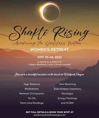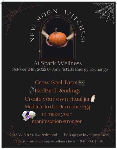 Homework: What has been your favorite mistake in the past 10 months? Newsletter.FreeWillAstrology.com Meditate in the Harmonic Egg to make your manifestation stronger 210 SW 5th St #4 Redmond hello@sparkwellness.love 541-604-2440 October 24th, 2022 6–8pm $33.33 Energy Exchange Register at www.sparkwellness.love INVEST IN YOU STYLE COACHING & ORGANIZATION FOR REAL BODIES & LIFESTYLES WARDROBE CURATION CAPSULE CREATION SHOPPING SUPPORT KIDS CLOSETS OCCASION WEAR WWW.CALICOCONCEPT.COM THECALICOCONCEPT 541-678-3383