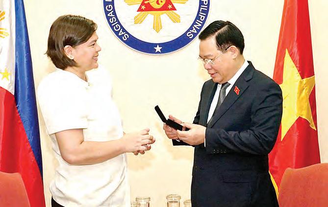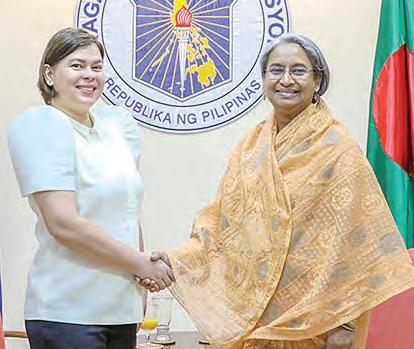 VEEP’S VISITORS. Vice President Sara DuterteCarpio thanks Vietnam Chairman of the National Assembly Vuong Dinh Hue, who paid her a courtesy call on Friday. The concurrent Education Secretary also welcomes her Bangladesh counterpart, Her Excellency Minister Dr. Dipu Moni, at the DepEd Central Office in Pasig City. VPSD FB Page