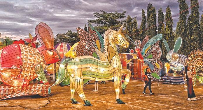 FESTIVE VIBE. Tourists walk along the Bacolod Baywalk, dotted by colorful IG-worthy art installations. Manny Marcelo
