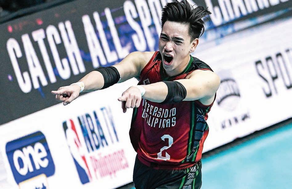 UP’s Louis Gamban celebrates after scoring a point against Ateneo in the UAAP Season 85 men’s volleyball tournament at the Filoil EcoOil Centre in San Juan on Wednesday.