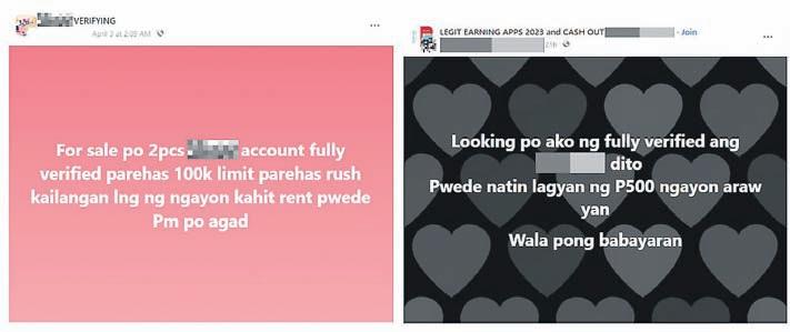 Since 2022, the local media have been reporting various apprehensions by police authorities of individuals allegedly involved in buying and selling of verified digital wallet accounts. Registered SIM accounts with verified digital wallet accounts are currently being bought for P350 each. On social media, the rates even go as low as P150 per account. These are then sold for an average of P600-P800 each.