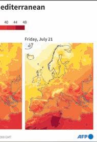 DEADLY HEAT. A person rests at the First Congregational United Church of Christ shelter in Phoenix, Arizona. The church opened its doors, providing water, food, and refreshments for residents seeking relief from the heat. Temperature forecasts for Europe and the Mediterranean (inset) showed the world is on track for its hottest July since measurements began, the European Union’s climate observatory said. AFP GRADUATION