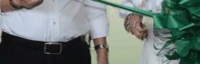 Real-life couple Marco Gumabao (left) and Christine Reyes (right) pay a visit during the opening of Landers Nuvali