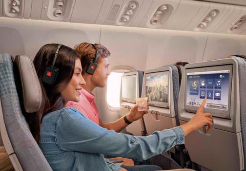 entertainment library ready to go the moment they board. Connectivity options like complimentary Wi-Fi access for Emirates Skywards members further enhance the inflight experience.