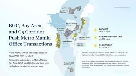 Skyline to the northwest, and Urdaneta Village and the Bonifacio Global City Skyline to the southeast.