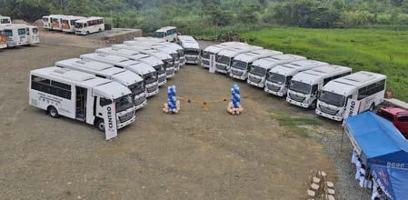 The motorcade of the competing Binibinis, wearing blue swimsuits by Justine Aliman and purple, light pink floral, and Anahawinspired headdresses, culminated with a runway presentation at The Lagoon in Gateway Mall 2.