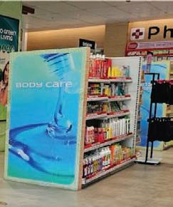 store, Watsons has opted for Solidus material instead of PVC-containing Sintra board for marketing materials, while all paper and boards used are recycled and carry FSC® certification. Display racks and fixtures are crafted from responsibly sourced wood, further enhancing their commitment to sustainability. Energy efficiency is prioritized with LED lighting that is both non-toxic and recyclable, reducing energy consumption by up to 33 percent. Additionally,