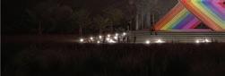 TDuring the day, the colors of the rainbow will reflect across the park, representing the vibrant lives of the victims. At night, the tribute transforms as the angel wings turn into an