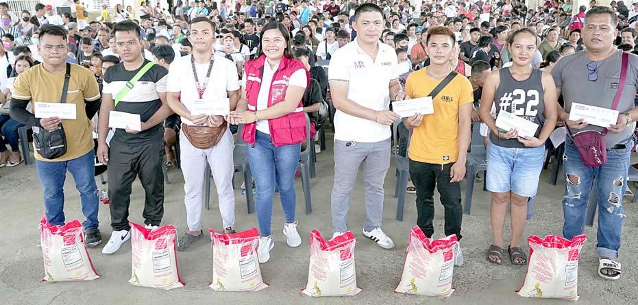 Dasmarinas, Cavite on Thursday. Inset shows the President trying out a massage at the fair. Around 12,000 families benefited from the program which was also attended by Agriculture Secretary Francis Tiu Laurel and Cavite Governor Jonvic Remulla. PPA POOL