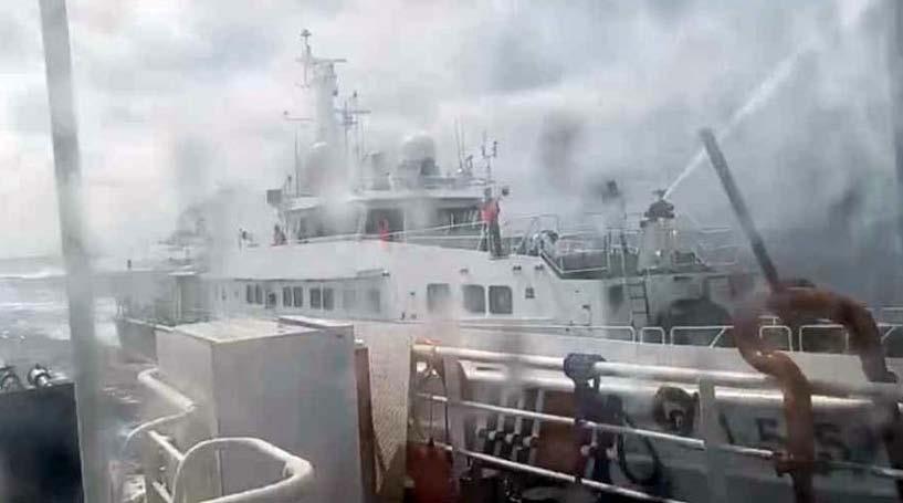 of Chinese Coast Guard, People's Liberation ArmyNavy, and Maritime Militia ships ganged up upon it.