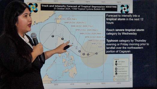 “Kristine” may intensify into a tropical storm in the next 12 hours, and reach severe tropical storm category on Wednesday and typhoon category on Thursday before making landfall, according to PAGASA.
