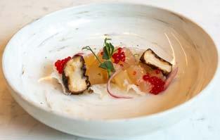 The dishes include smoked mackerel ceviche with laing purée and cilantro relish, a