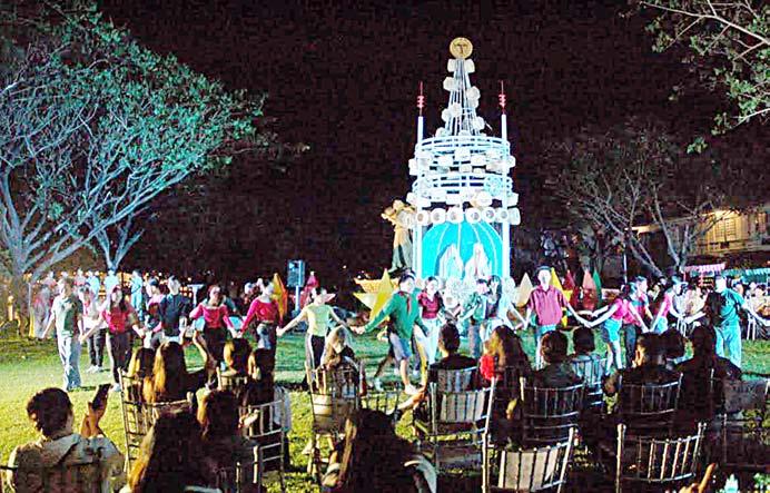 Valenciano produced a beardless, crucified Christ. His Virgin Mary, wearing a simple slip dress, and infant Jesus look like they strolled in from town. His Joseph dons a polo barong with his hair shorn and a trimmed beard like the Filipinos. Valenciano has brought sacred images to modern times and the Filipino visual vernacular.