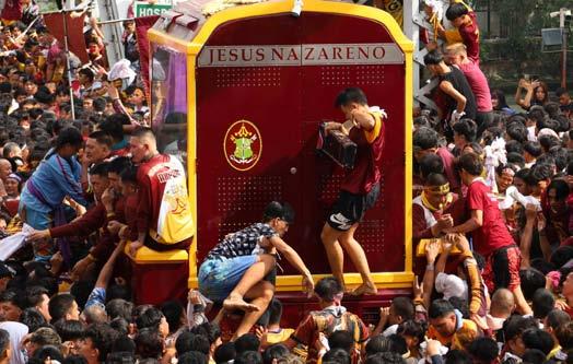 Still, some overzealous devotees attempted to climb the “andas” or the wheeled carriage that transported Christ’s image despite repeated pleas from marshals for them to come down.