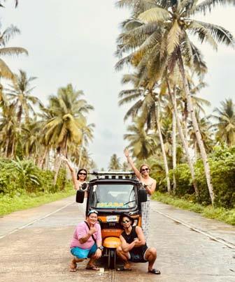 hit Siargao. He used to work for a restaurant as a cook and as a manager for another property in General Luna. His normal route is picking up passengers at Sayak Airport and Dapa Port and dropping them off in the General Luna area. While driving a tuktuk may seem easy, it comes with its own set of challenges. The roads, though improving, can be rough and uneven, especially during the rainy season. The cost of fuel is another concern, as prices fluctuate and eat into daily earnings. And with the growing number of travelers, competition among drivers has increased. But Rai remains optimistic.