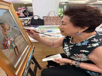 children and grandchildren. Irene Ibañez, a watercolorist, recently became a finalist in the 2023 GSIS National Art Competition. Joyce Ashworth received “honorable mention” while Atty. Vicky Pollisco emerged as a finalist among thousands who participated in the 2024 GSIS National Art Competition. Len Torres Fernandez, Leni Reynoso Araullo, and Fang Fang Li—all breast cancer survivors— are among the most inspiring resident artists of Sunshine Place. With each brushstroke, they embody grit, transforming their pain into powerful art. All three have exhibited their works in the local art scene.