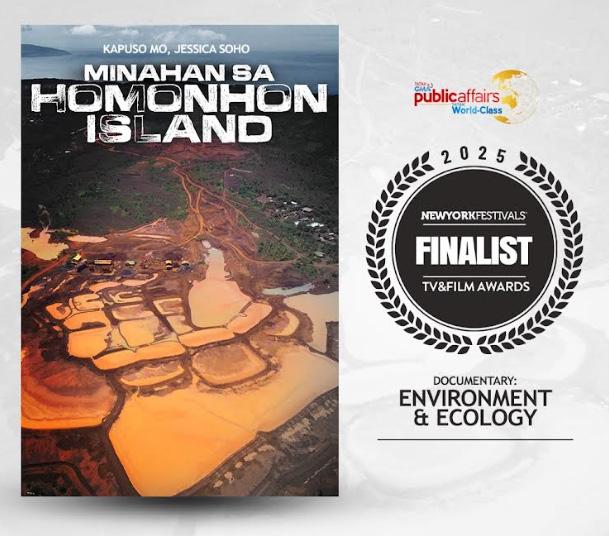 Kapuso Mo, Jessica Soho (KMJS) was named a finalist in the Documentary: Environment & Ecology category for its episode Minahan sa Homonhon Island (Nickel and Dime: The Cost of Mining in Homonhon Island), which examined the impact of large-scale mining operations in Eastern Samar.