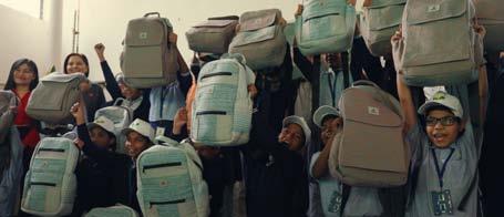 Representatives from Emirates visited each site in India, Bangladesh, and Pakistan, helping pack and hand out the bags while connecting with local partners. Each bag contained school supplies such as pens, notebooks, calculators, and a variety of books for classroom use.