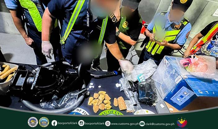 SMUGGLED. Agents from the Bureau of Customs (BOC) at the Port of Clark present smuggled drugs, including “shabu” with a value of P7.5 million from a successful anti-smuggling operation.