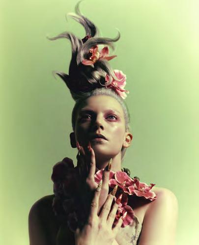 blue in Liloura Lush, chocolate and mint in Velvet Frost, russet and orange in Spiced Ember, and crystalline tones in Noël Aurora, inspired by the Northern Lights. Finally, the Character of Christmas explores moods and settings: a cosmopolitan bachelor pad with geometric accents and a French provincial-inspired living room where a ceiling-mounted tree glows above a rustic hearth.