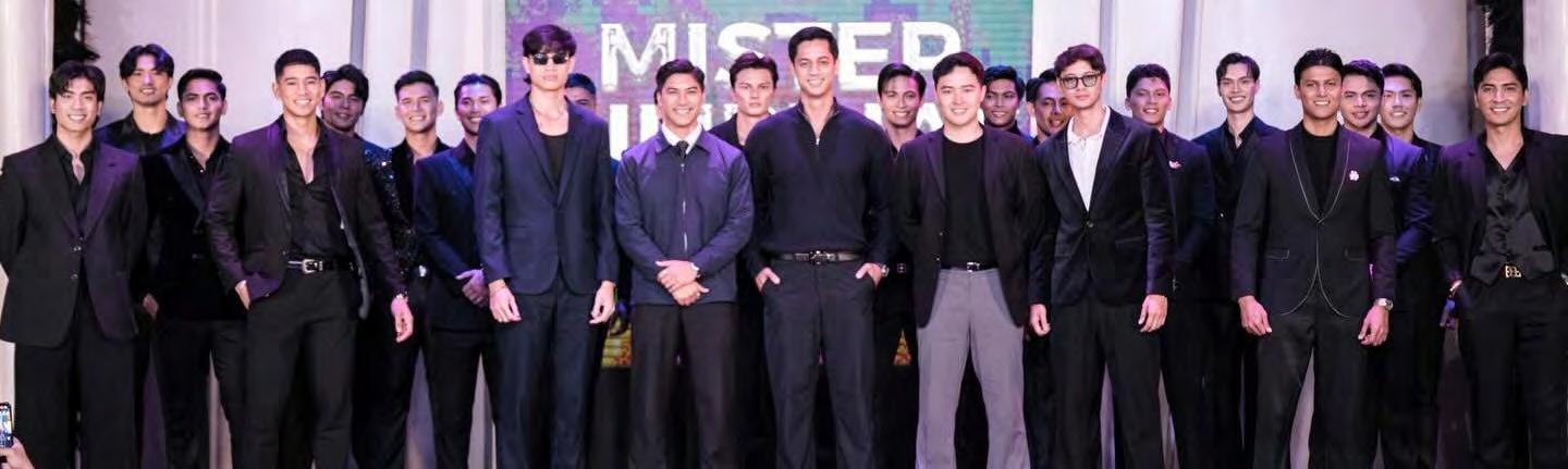 The 20 candidates vying for the titles of Mister Supranational Philippines, Mister International Philippines, Mister Global Philippines, and Manhunt International Philippines are Aian Abad Santos Pampanga), Red Arceo City—Filipino Society of the United Kingdom), (Batangas), Gene Cabezudo (Bicol—Filipino Society of West Asia), Wayne Alba (Calamba, Laguna—Filipino Society of Italy), Gian Guidicelli (Cebu City), Cas Villones (Laguna), Yasser Rodriguez (Mabalacat, Pampanga), John Bonifacio (Macabebe, Pampanga), Godfrey Murillo (Malolos, Bulacan), Jason Lopez (Mandaluyong—Filipino Society of Australia), Felipe Marasigan (Manila—Filipino Society of California), Rod Soriano (Pangasinan), MJ Ordillano (Parañaque), Enzo Bonoan (Quezon City), Brylle Villena (Quezon Province), Jessie Guinto (San Jose del Monte, Bulacan), Ronald Boorman (Southern Leyte—Filipino Society of Canada), Zach Russell (Taguig— Filipino Society of Montana), and JP Gundayao (Tarlac Province).