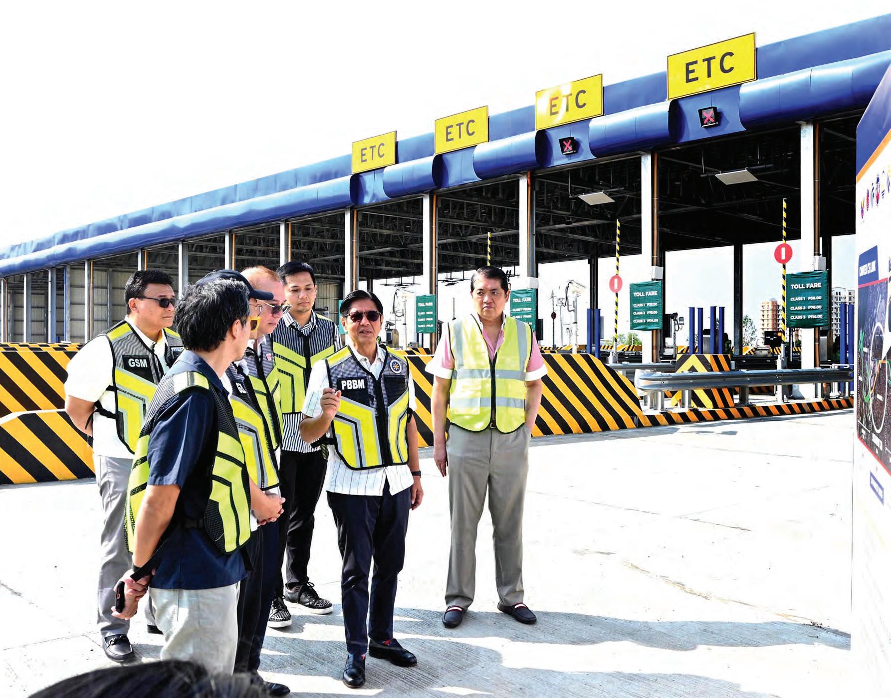 TOLL FREE. President Ferdinand R. Marcos, Jr. inspects the newly-opened CAVITEX C5 Link Segment 3B yesterday with DOTr Secretary Giovanni Lopez, DPWH Secretary Vince Dizon, and MPTC President Gilbert Santamaria. Inset shows passengers bound for Northern Luzon lining up for reservation tickets at a bus terminal in Sampaloc, Manila. Revoli Cortez, Norman Cruz