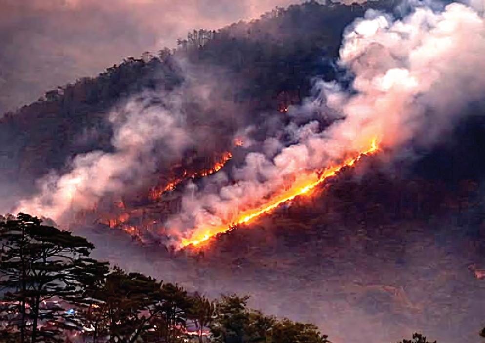 RAGING. Forest fires burn uncontrollably on Kalawitan, Sabangan, Mt. Province as Bureau of Fire personnel try to bring in equipment to contain the blaze. Dave Leprozo