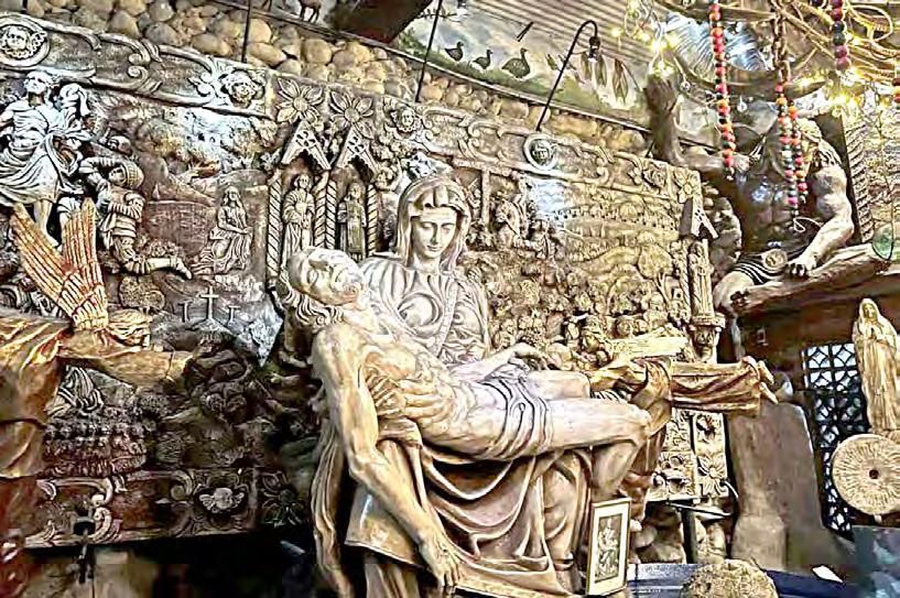 Every wall, floor and ceiling is filled with sculptures, paintings and mosaics, crafted from materials as varied as cement, terra cotta, wood, iron, marble, ivory and glass. The subjects leap across cultures and centuries — religious icons, Grecian figures, Chinese warriors, Egyptian gods — creating a kaleidoscope of influences.