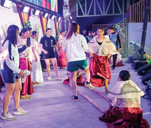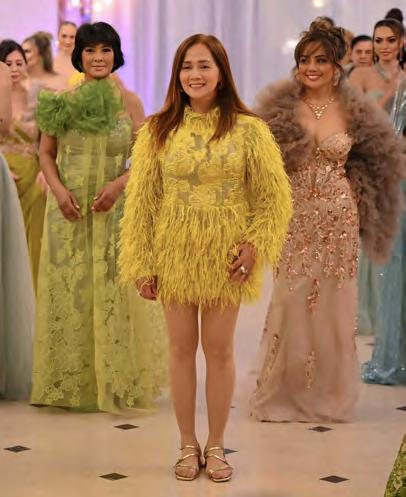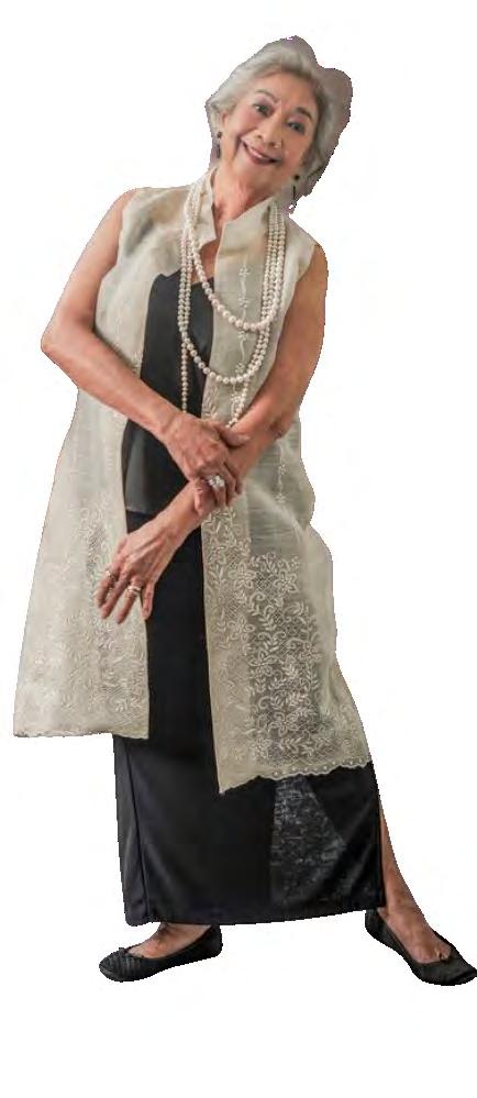 about presence. Her mantra, “just show up,” lands with quiet insistence. Consistency, she believes, reshapes women in ways that are both visible and deeply internal. Over time, the club evolves into a support system, where friendships form without ceremony and confidence builds in steady layers. Her choice of an upcycled terno bolero, structured but softened by detail, echoes the balance she cultivates within the group. Then there is Reyes, whose influence stretches across decades of Philippine dance. As founder of Alice Reyes Dance Philippines, she has trained generations of dancers, anchoring them in discipline while urging them to carry the art forward. Her approach is methodical, almost exacting, but always directed at growth. For Reyes, there are no shortcuts. Progress comes from repetition, from returning to the same movement until it yields something new. The philosophy is simple but demanding: keep going. Keep refining. Let persistence do its work.