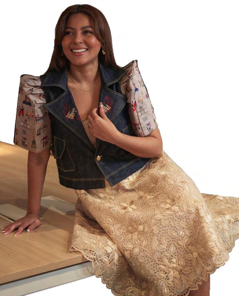 Her style mirrors that stance, with butterfly sleeves that claim space, paired with denim that grounds it in the present. “I hope to see more Filipina women being lady bosses in the morning,” she says, “and celebrating their femininity after work.”