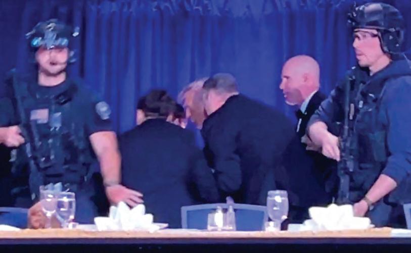 US SECRET Service agents bundled Donald Trump from the stage as shots rang out Saturday at a media gala, in what the president later described as an attack by a “would-be assassin.” Armed guards opened fire at the gunman who charged through a security checkpoint just outside the ballroom of the hotel where Trump, First Lady Melania Trump, senior government