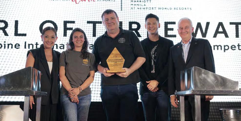 Bruce Winton awarded Gallagher a commemorative oyster trophy made from recycled chopsticks produced by ChopValue Philippines. Also present were ChopValue managing director Tim Ng and Newport World Resorts senior vice president for marketing Mitch Suarez The competition featured oysters from France and Ireland, alongside dishes served to invited guests and loyalty members after the event. The program was hosted by Filipino-American television personality Donita Rose, with entertainment from singer and author Felson Palad
